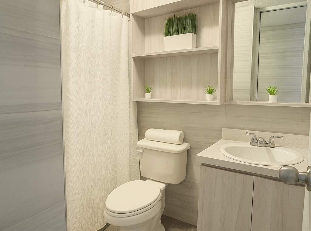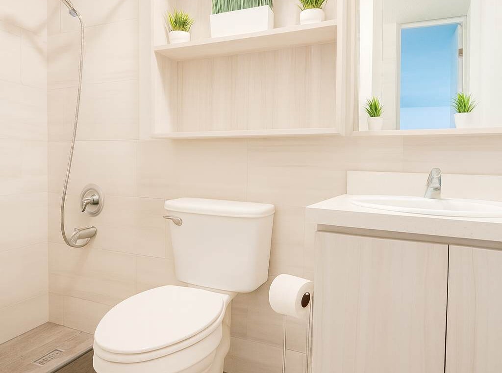 Unwind in your private bedroom oasis, featuring a sumptuous king-size bed set against a custom white-on-white luxury bed frame that exudes elegance. Recharge in our newly-renovated bathroom, where modern fixtures meet opulent details to create the ultimate pampering experience.